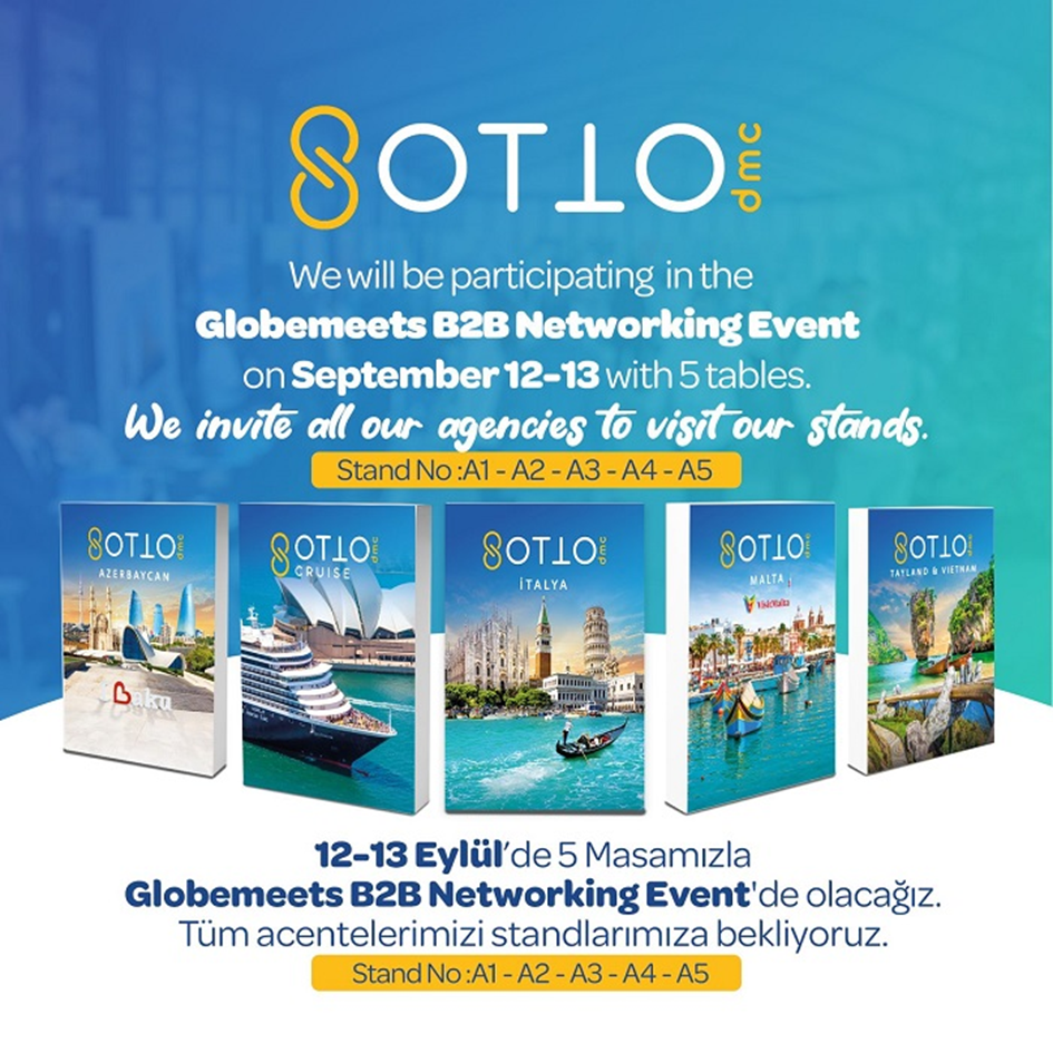 OTTO DMC, bu yıl ikinci kez düzenlenecek GlobeMeets B2B Networking Event’e katılacak. 12 ve 13 Eylül tarihlerinde İstanbul’da Rixos Tersane Hotel’de gerçekleştirilecek olan etkinlik, yerel ve uluslararası sektör profesyonellerini bir araya getiriyor. OTTO DMC Genel Müdürü Cem Yağlıoğlu, “Bu yıl beş farklı masa ile etkinliğe katılıyoruz. Azerbaycan için Nigar Parla, Cruise seyahatleri için Zafer Alten, İtalya için Uğur Alkaya, Malta için Melek Yağlıoğlu ve VisitMalta ekibi, Tayland ve Vietnam için ise Harun Işıkmen ve ben yer alacağız” dedi. Yağlıoğlu ayrıca, “OTTO DMC’nin tecrübeli ve dinamik ekibi, tüm masalarda en yeni ve güncel bilgileri siz değerli meslektaşlarımızla paylaşacak” ifadelerini kullandı ve tüm katılımcıları standlarına davet etti. Etkinlikte, Türkiye’den ve dünya genelinden gelen acenteler stand numaraları A1, A2, A3, A4 ve A5’te OTTO DMC’yi ziyaret edebilir.